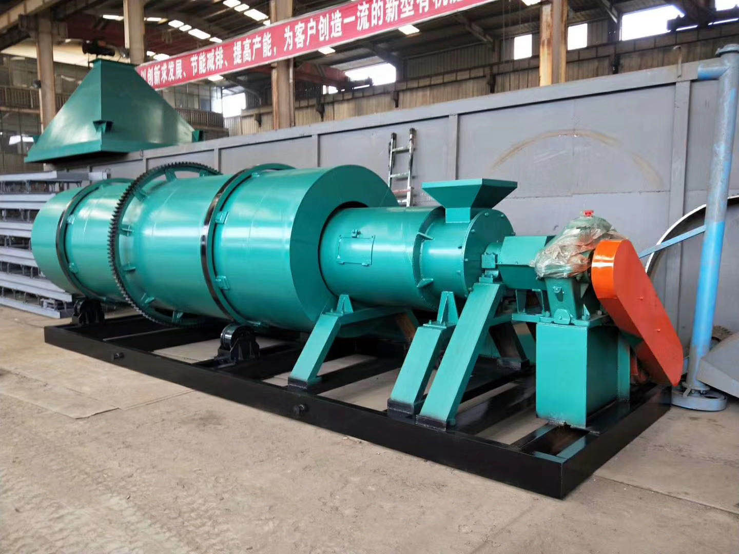 滾筒傾斜一定角度,顆粒逐漸向出料端移動(dòng)并排出。